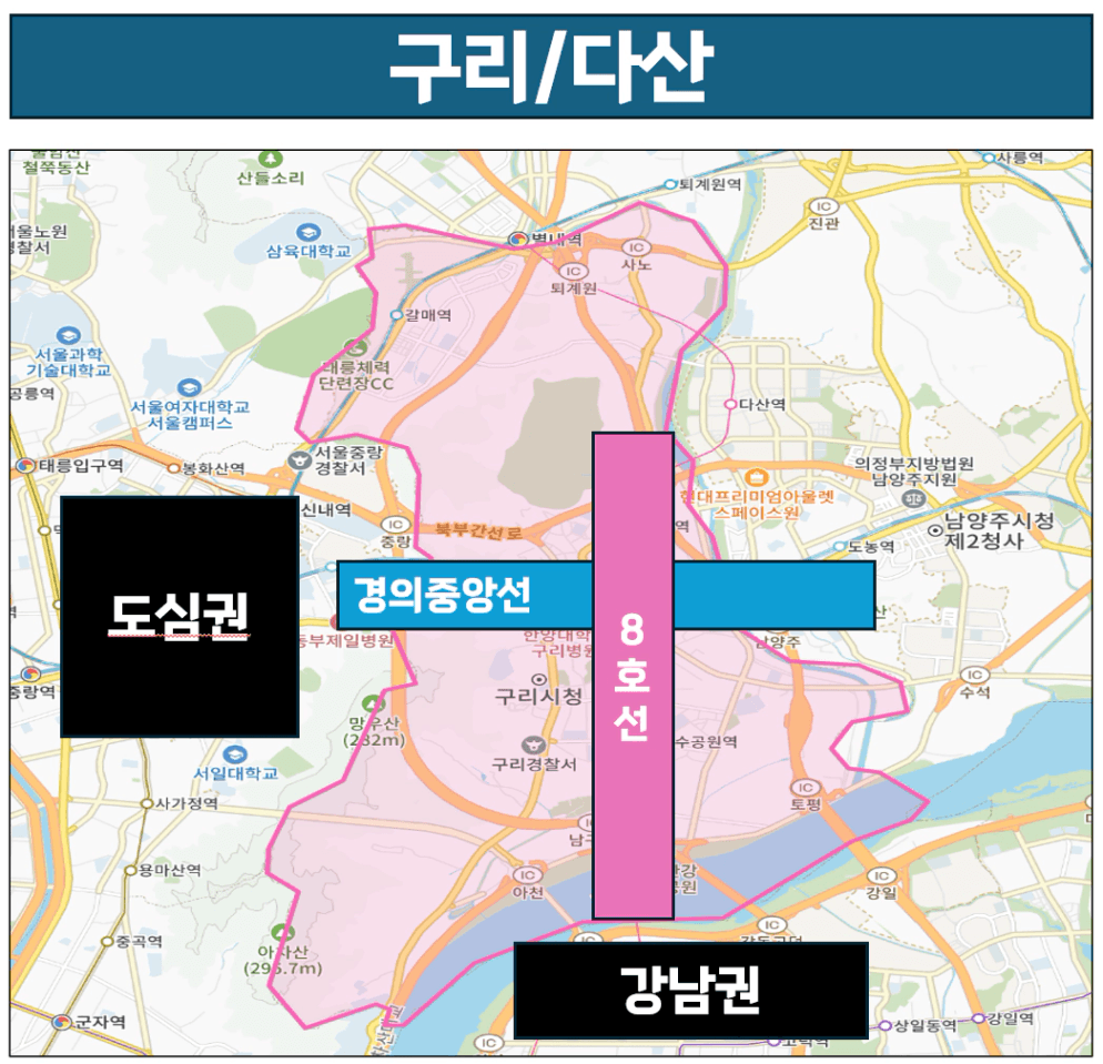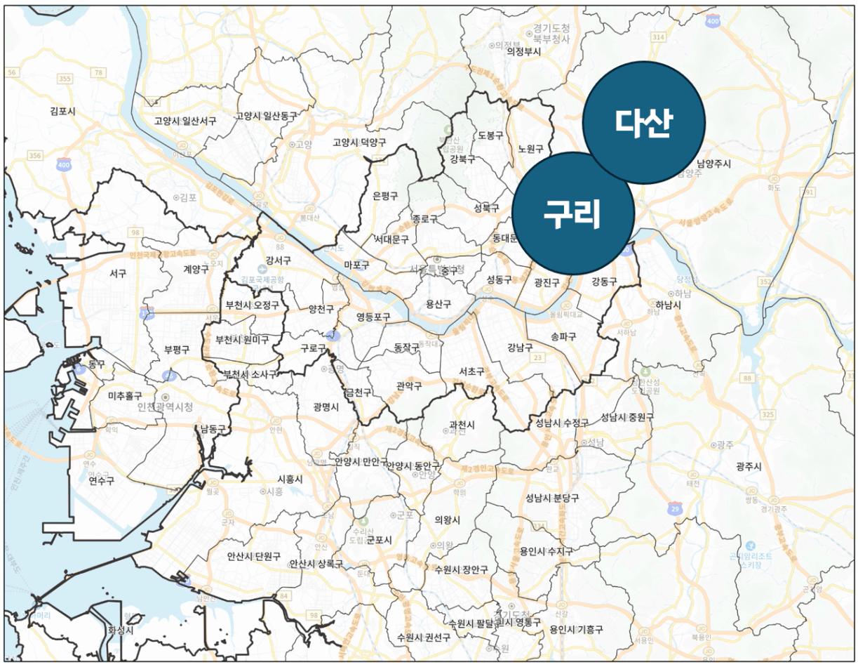 구리는 서울 광진구·중랑구와 경계가 맞닿아 있어