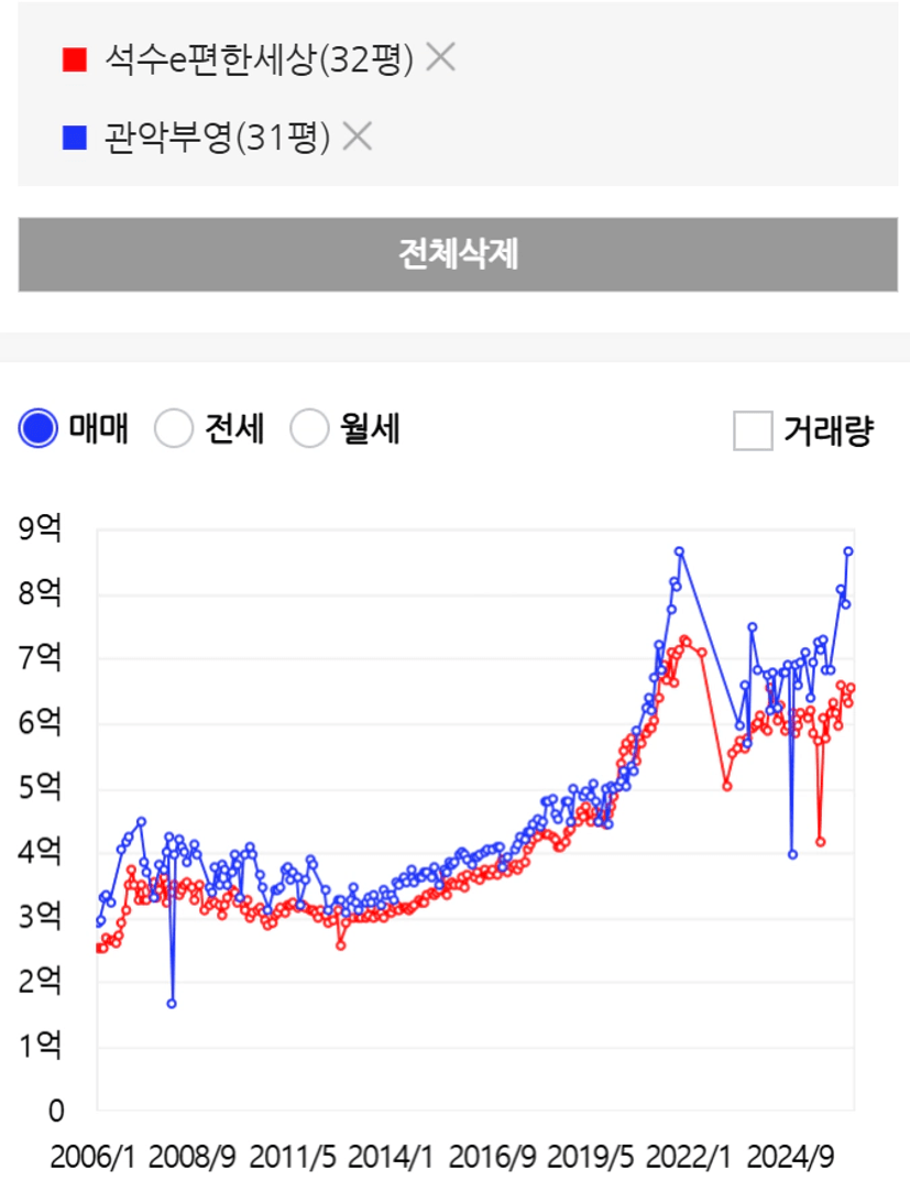평촌이 가격이 크게 오른 반면 아직 만안구 단지는 저렴하다고 볼 수 있습니다.