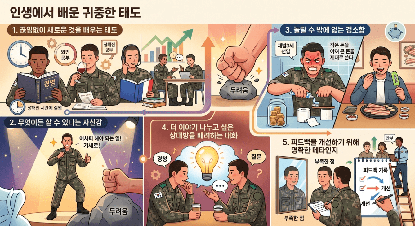 한 번은 너무 궁금해서 물어본 적이 있었습니다. “OOO 병장님의 자신감의 근거가 너무 궁금합니다. 말씀해 주실 수 있으십니까?”