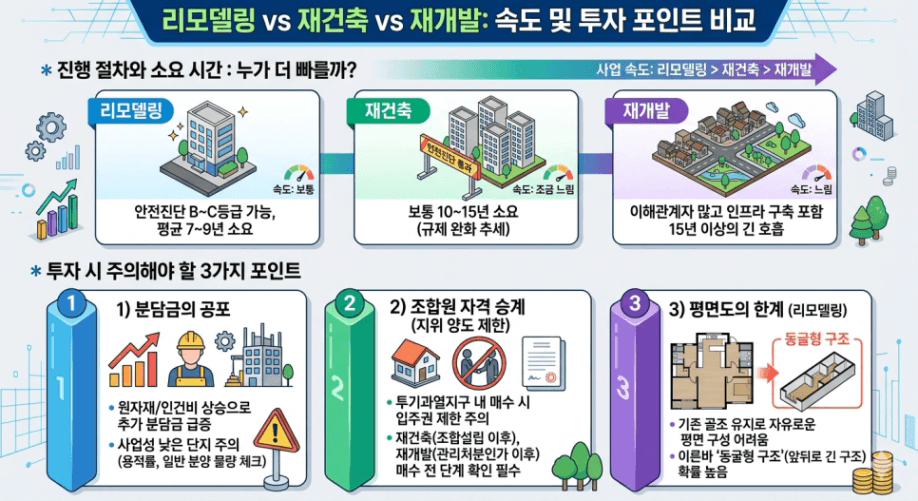 장점으로는 재건축에 비해 초과이익환수제 등 규제가 상대적으로 덜하고
