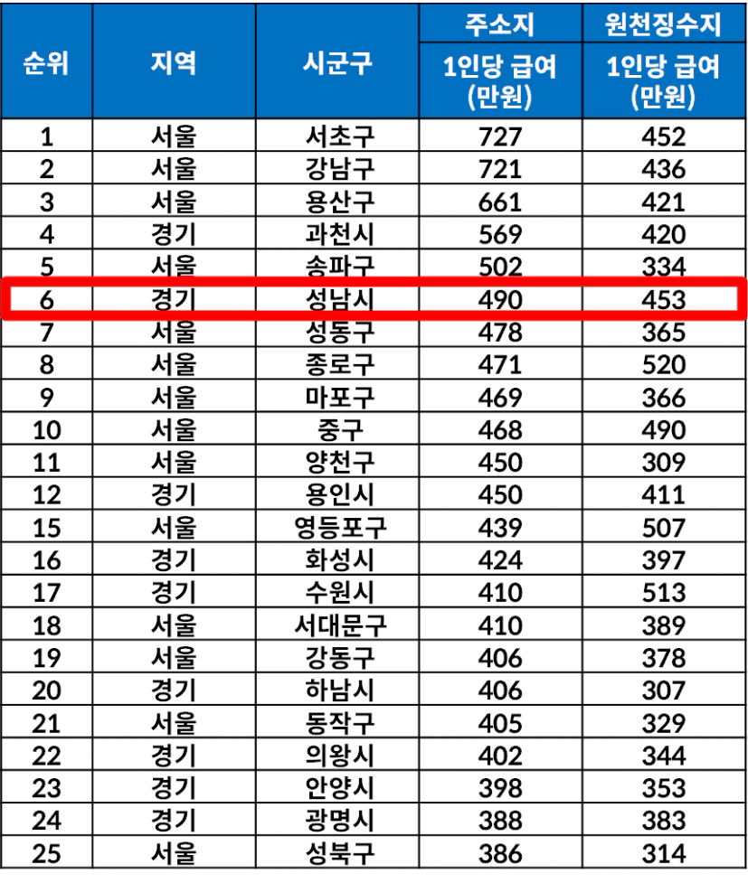 구분 | 강남구 | 성남시 기준(판교테크노밸리) |