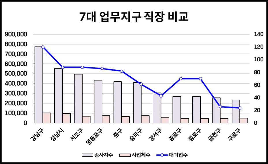 단순 종사자수는 강남이 훨씬 많아요.