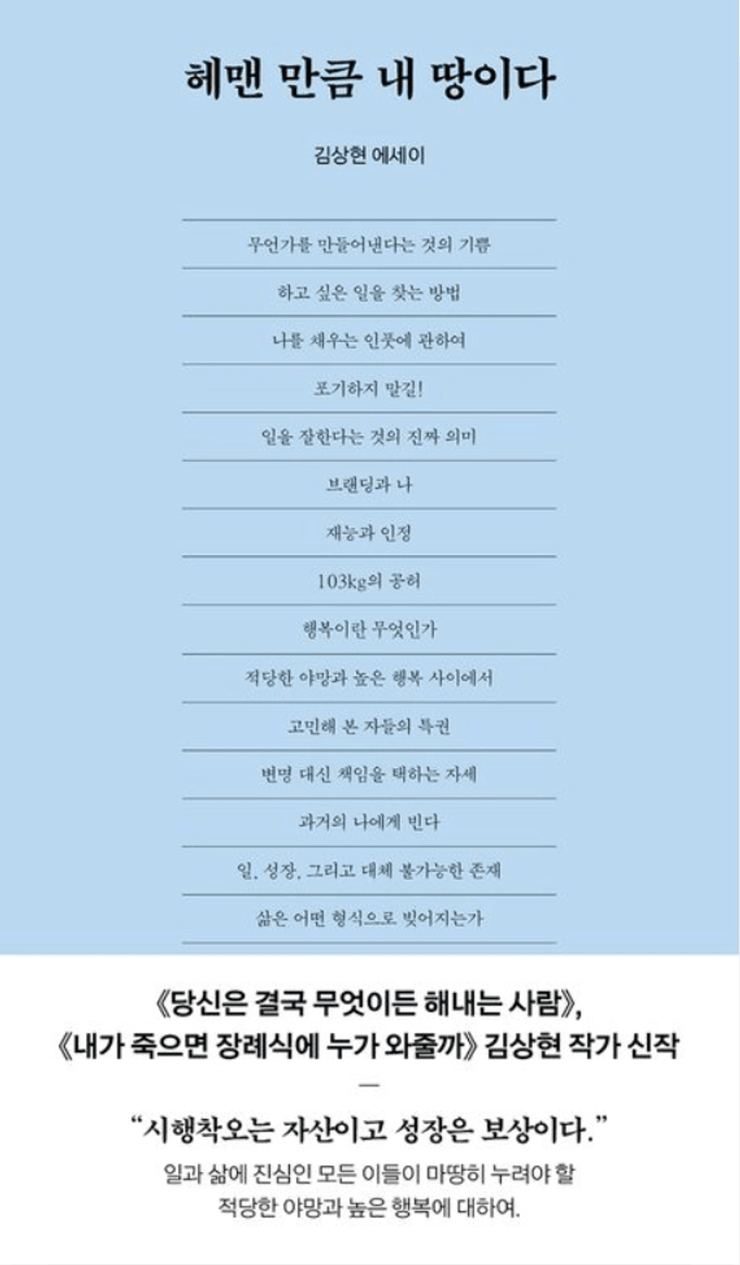 1. 책 제목: 헤맨 만큼 내 땅이다