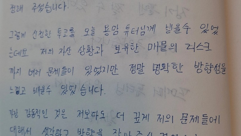그런데 지난 2월 실전반을 하면서 미요미우 튜터님과 튜터링데이에서 꼭 투자코칭을 받아볼 것을 원씽으로 정해주셨습니다. ㅎㅎ