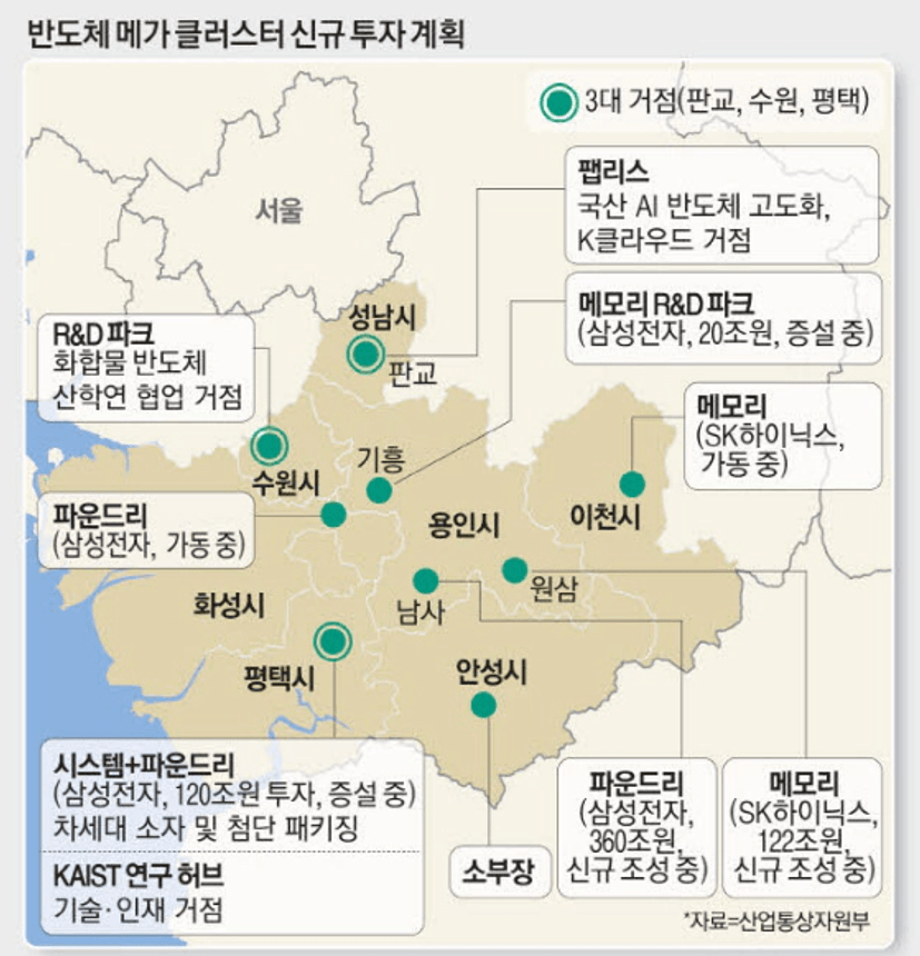 | 반도체 축 | 삼성 본사 | 삼성 기흥·화성 | 삼성 평택 | SK 122조 + 삼성 360조 |