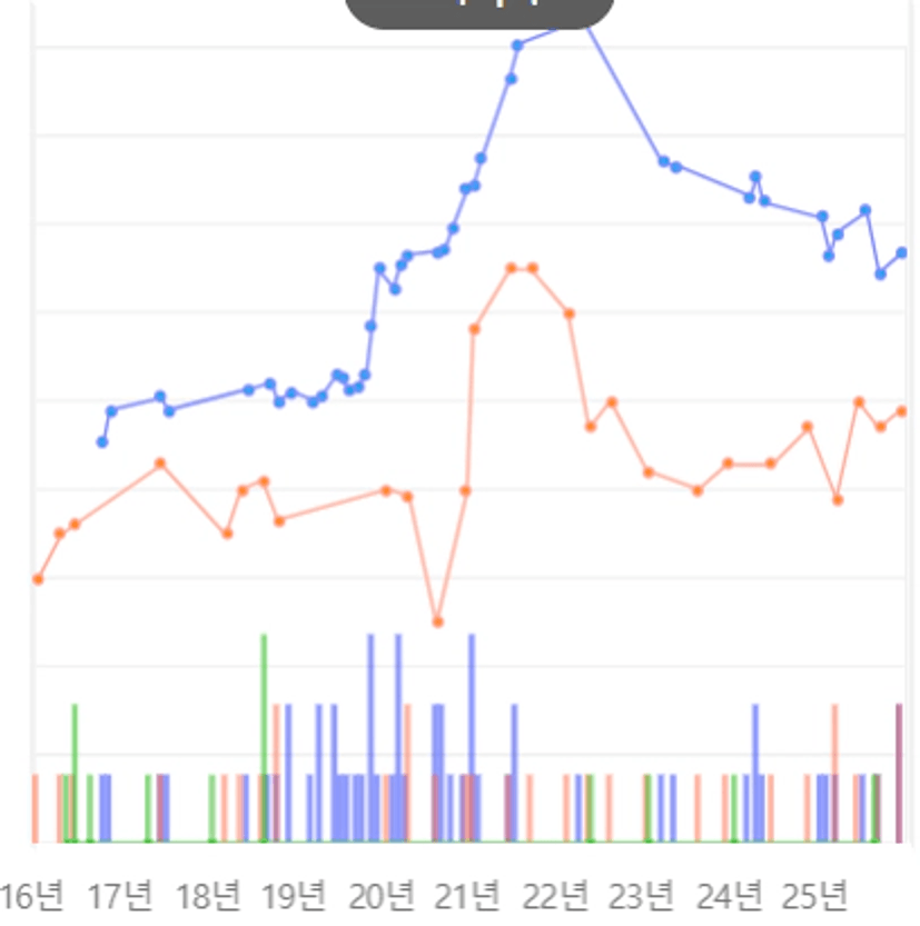 현재 가격이 전 고점대비해서 20%이상 빠진 상태임에도