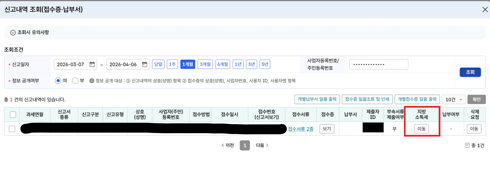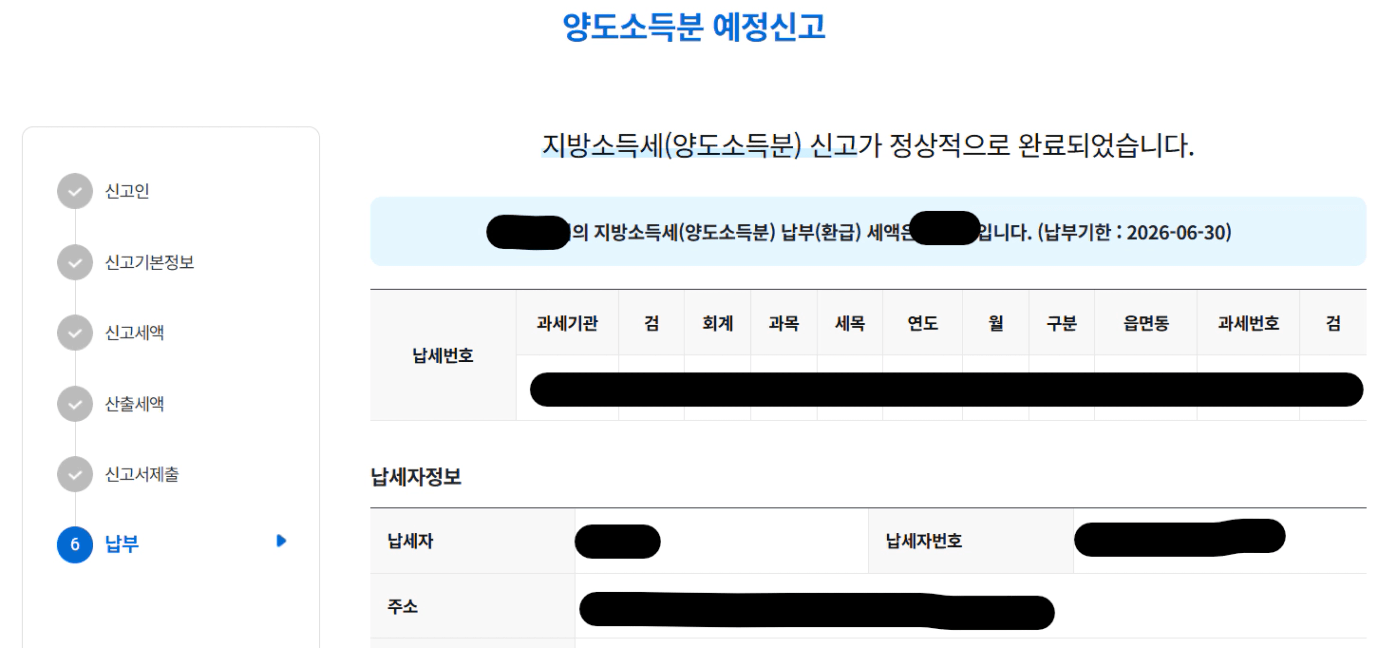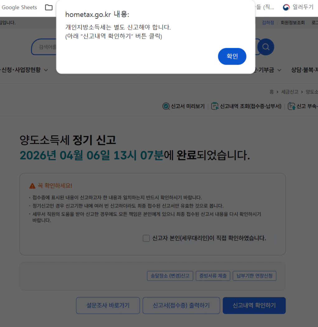 신고내역을 확인하면 양도세 신고한 내역이 뜨게됩니다.