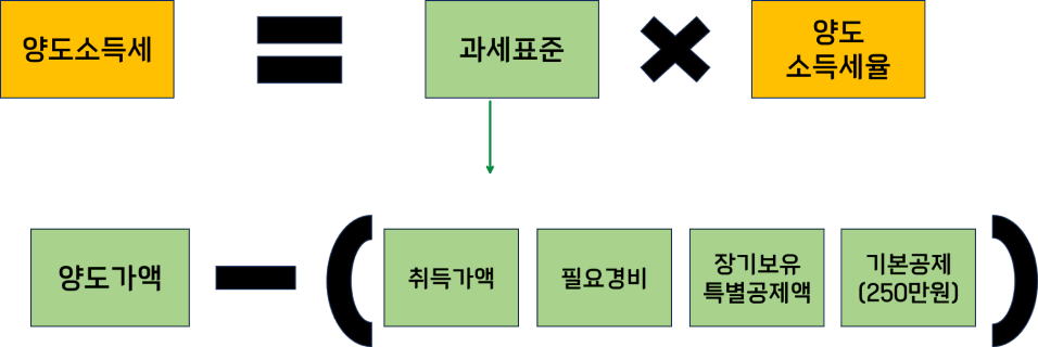 그리고 양도소득기본공제로 양도자 1인당 연간 250만원을 공제해줍니다.