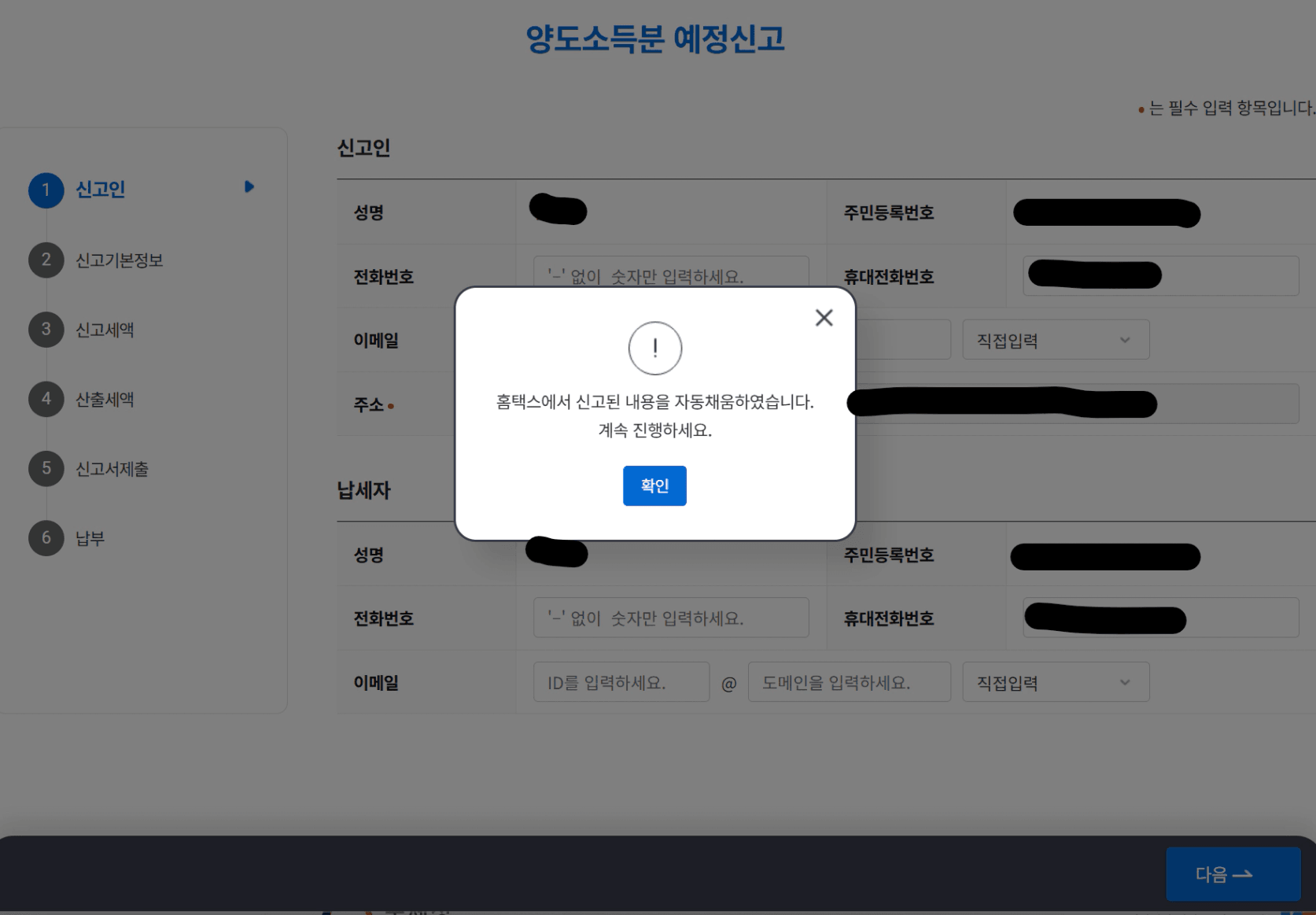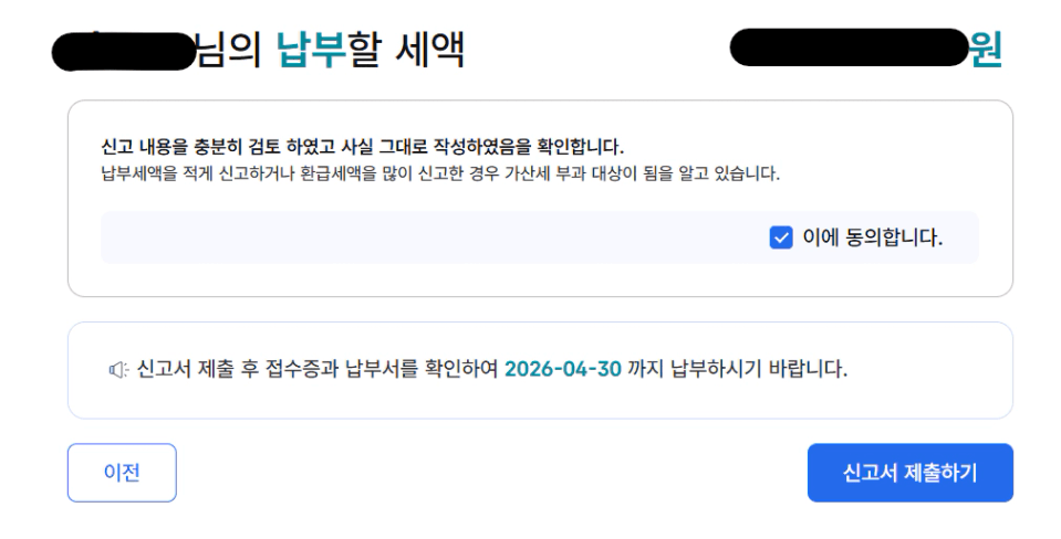 7. 새액 확인 및 신고서 제출