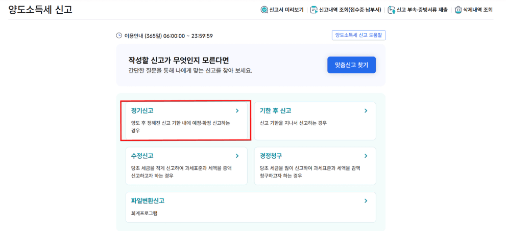 기한내 신고라면 [정기신고]를 선택합니다.