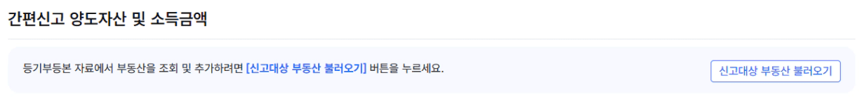 양수인정보를 작성완료를 선택하면, 간편신고 양도자산 및 소득금액을 입력하는 창이 뜹니다.