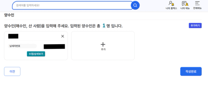 이때, 양수인 정보는 자동으로 뜹니다.
