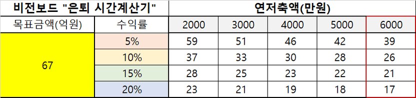 필요한 노후 자금 합계 ▶ 총 66억 7천 만원