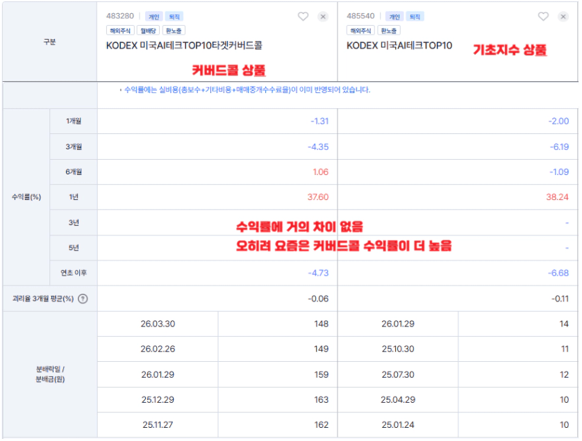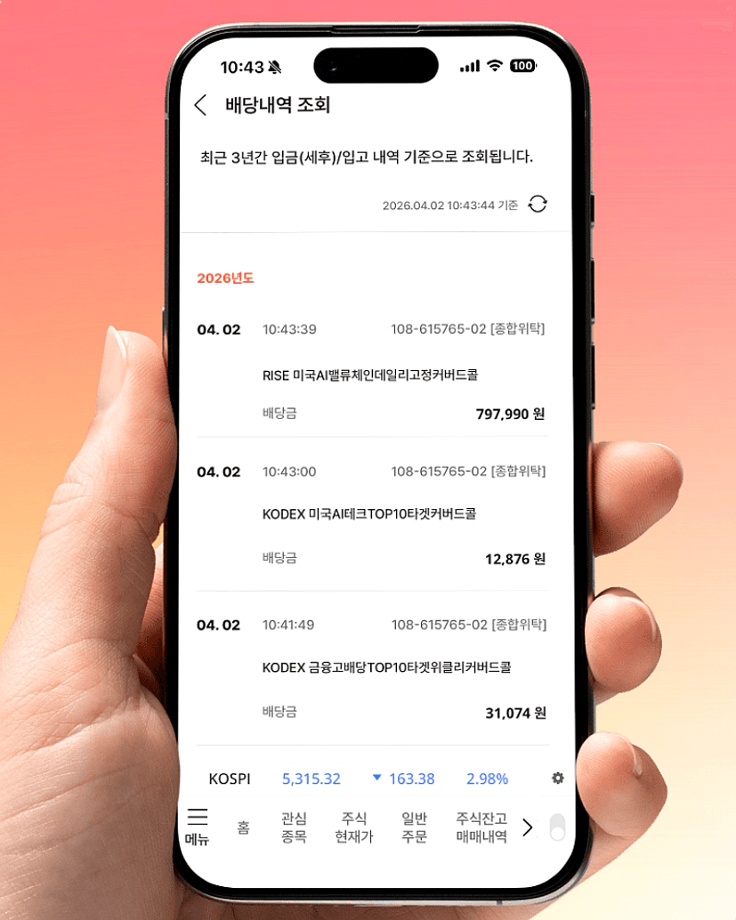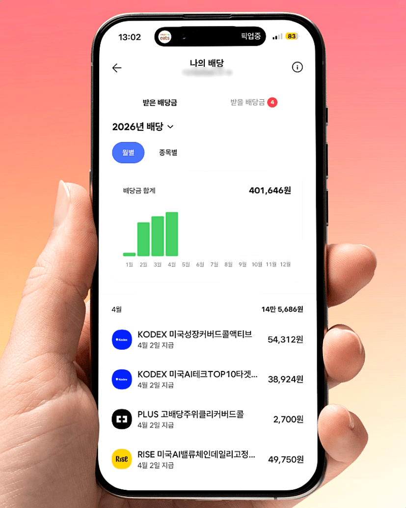 | Kodex미국AI테크TOP10타겟커버드콜 | 일반 계좌: 12,876원 연금저축계좌: 46,324원 ISA: 38,924원 계: 98,124원 |