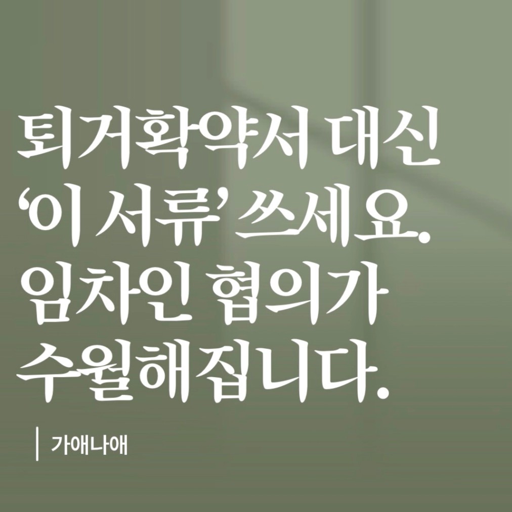 하지만 임차인 입장에서는 퇴거가 반갑지 않은 상황일 수 있습니다. 미안한 마음으로 조심스럽게 부탁하는 입장인데, ‘퇴거확약서’라는 명칭이 자칫 상대에게 거부감을 줄까 봐 걱정되기도 했습니다.
