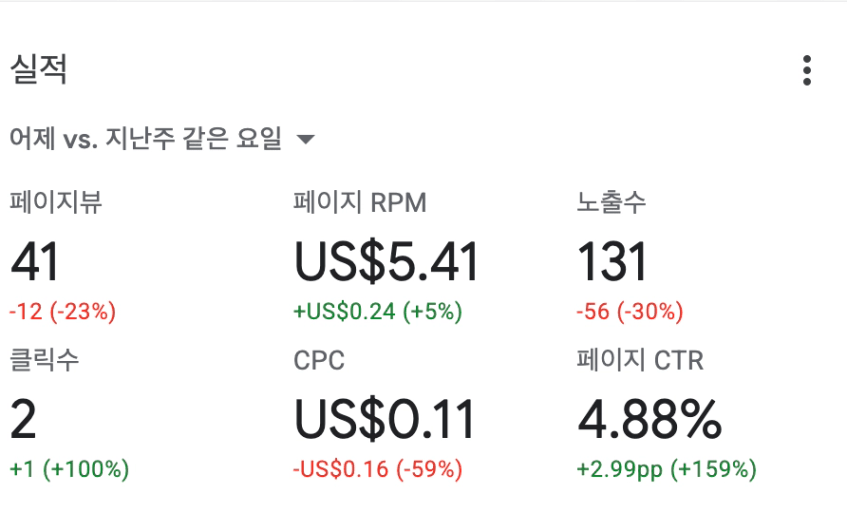 클릭이 떨어지니 하루 버는 금액도