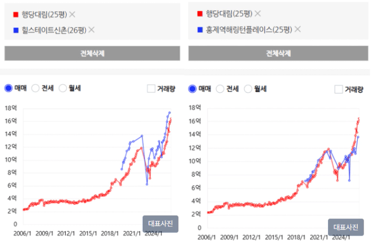 1등 생활권의 힐스 신촌은 2급지 구축을 따돌리고 올라가는 중이고