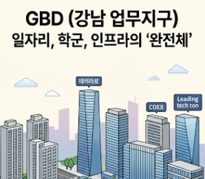 | GBD | 강남, 서초 | 2, 9, 신분당 | 인프라, 학군, IT 밀집 | 40억 ~ 60억 원대 |