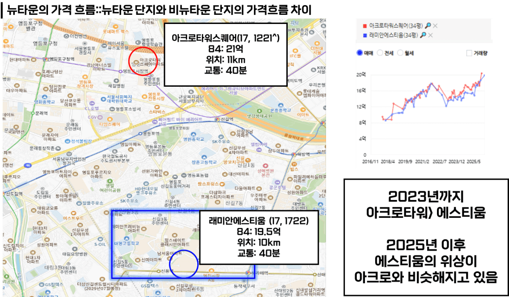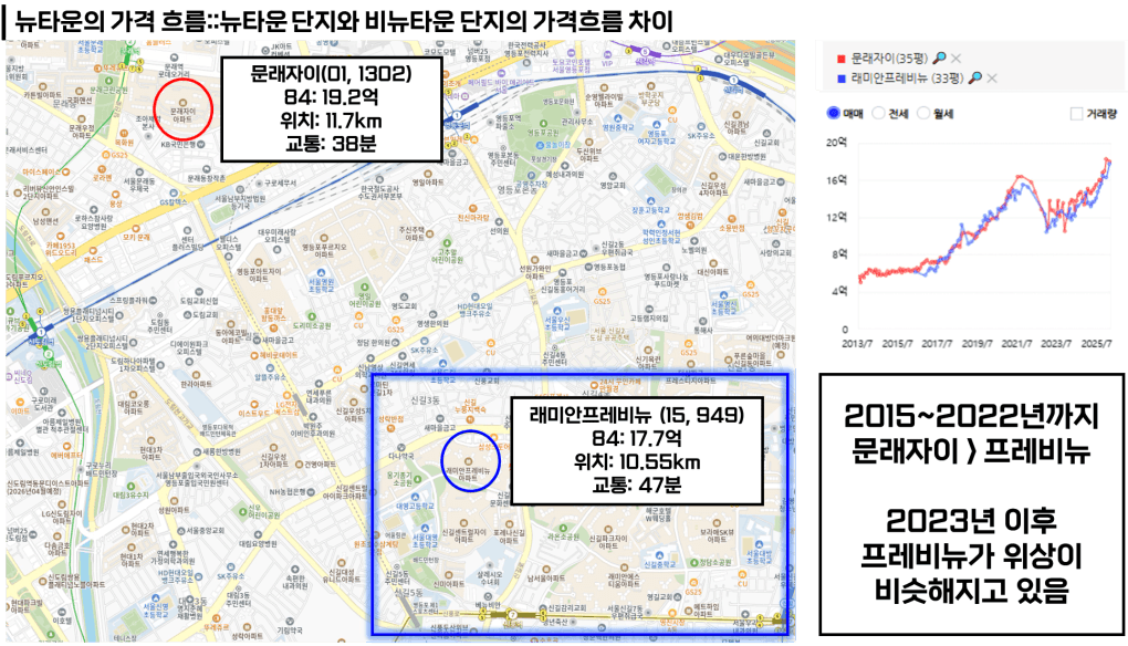 ▶ 입지 좋은 구축 vs 뉴타운 신축의 추격 (문래자이 vs 프레비뉴)