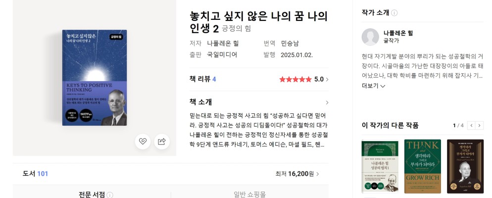 2. 저자 및 출판사: 나폴레온힐(민승남옮김) / 국일미디어