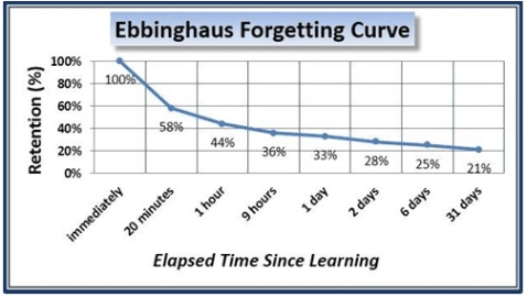 하루가 지나면 33%가 될 기억력을 오랜기간동안 유지할 수 있습니다.