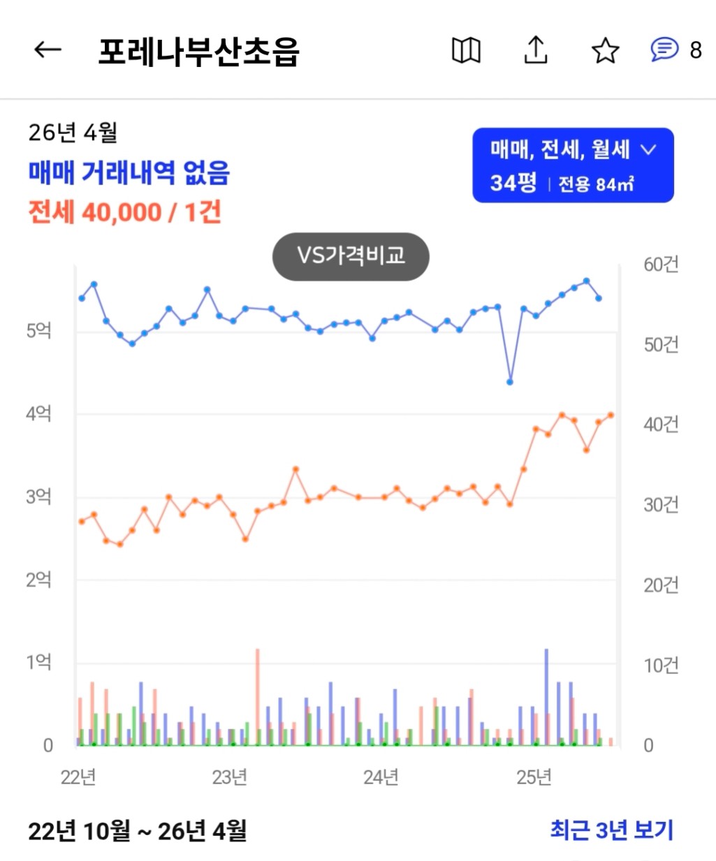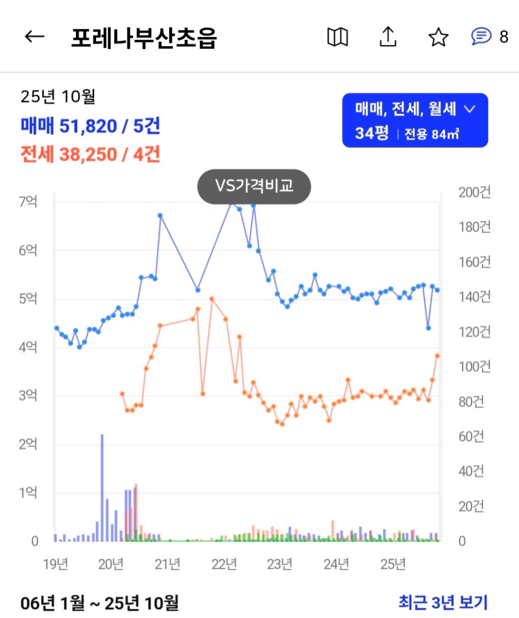 포레나초읍의 RR을 5.15억에 살 수 있었고,
