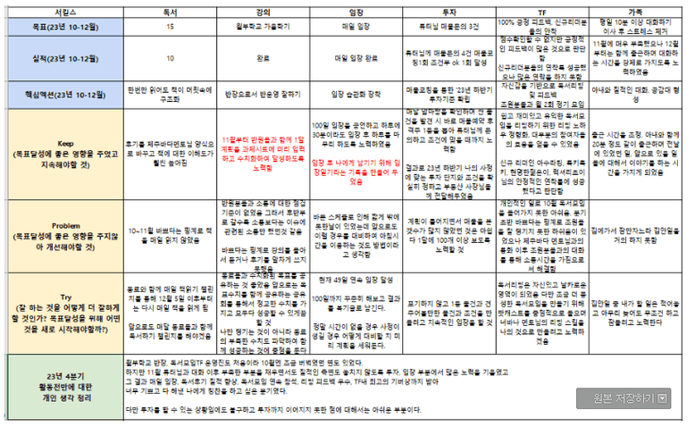 잘하던 것 부족한 것 더 잘하기 위해 해야 하는 것들을 정리하였습니다.