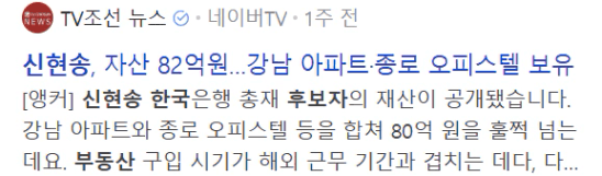 얼마 전 신현송 한은 총재 후보자의 재산 구성이 공개되었습니다.