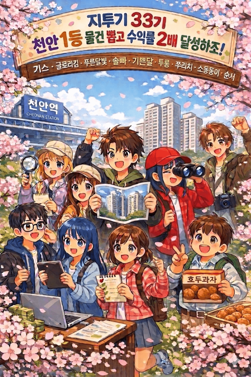 안녕하세요! 강한 실행력을 가진 사람으로 성장하고 싶은 지투기 33기 천안 1등 물건 뽑고 수익률 2배 달성하조 기스입니다🤗