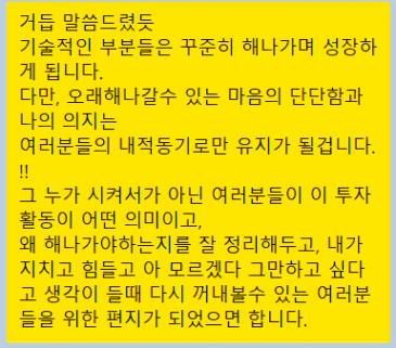 감사합니다 튜터님! 저도 언젠가 투자 후배님들께 튜터님처럼 따뜻하고 현명한 선배가 되고 싶습니다!