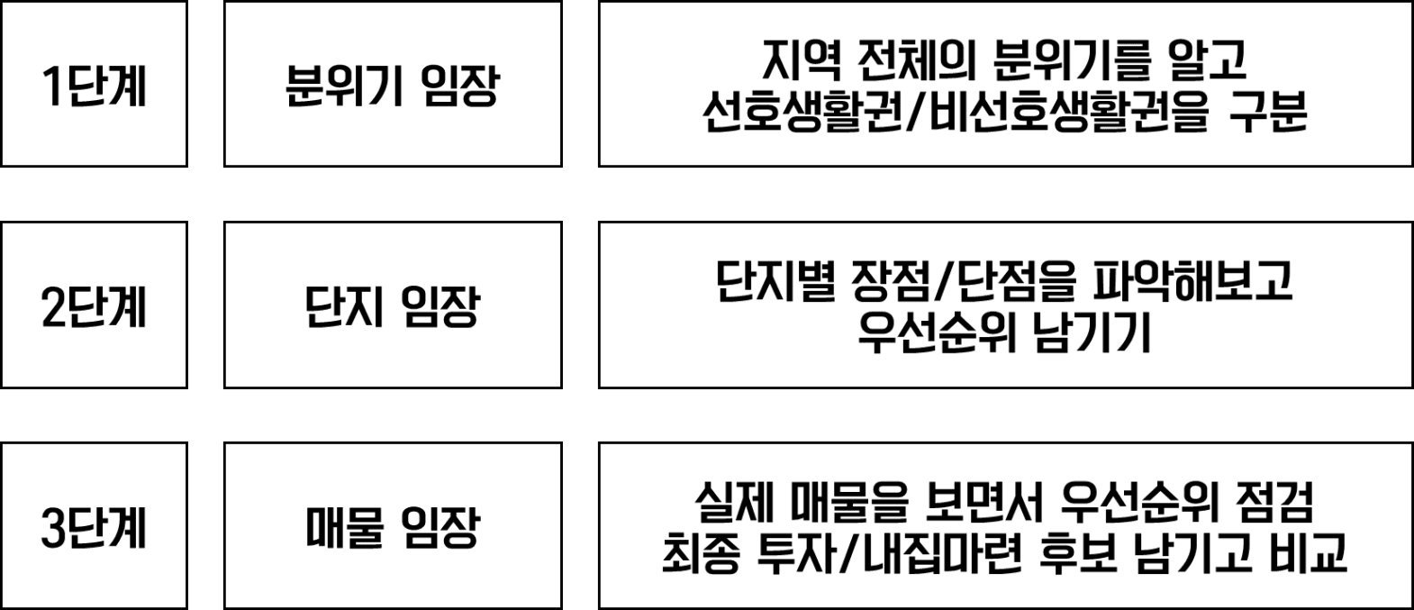 분위기 임장 → 단지 임장 → 매물임장