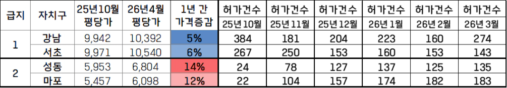 마포랑 성동은 오히려 고개를 들고 있습니다