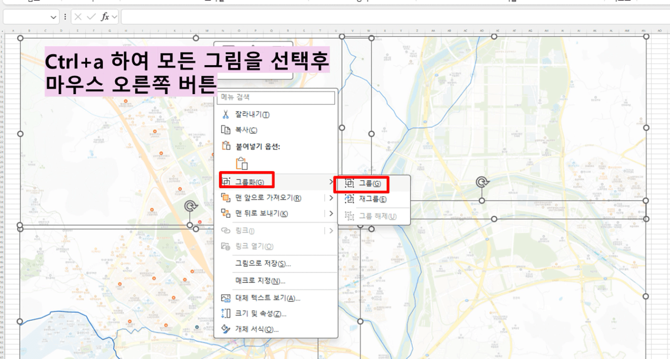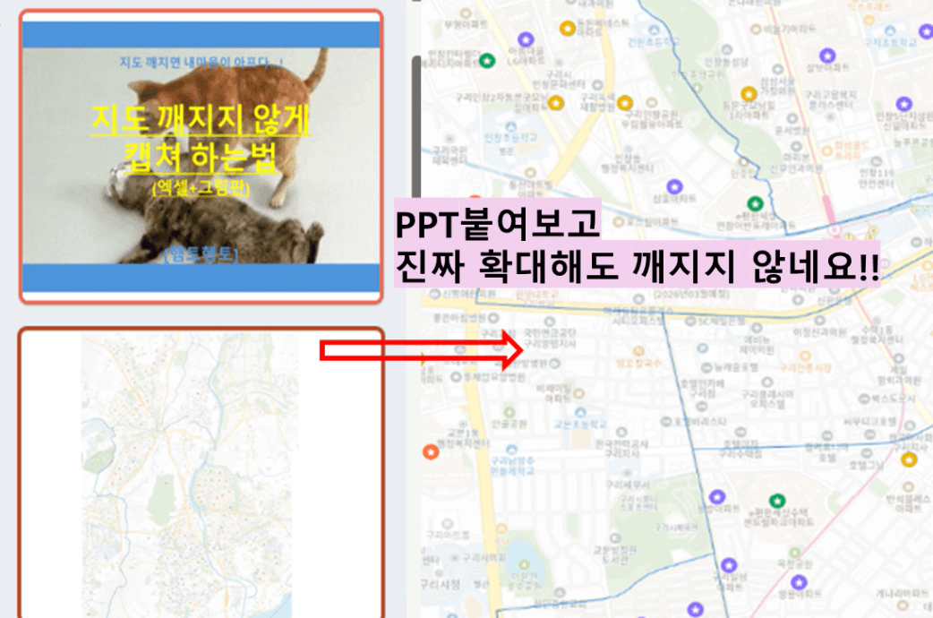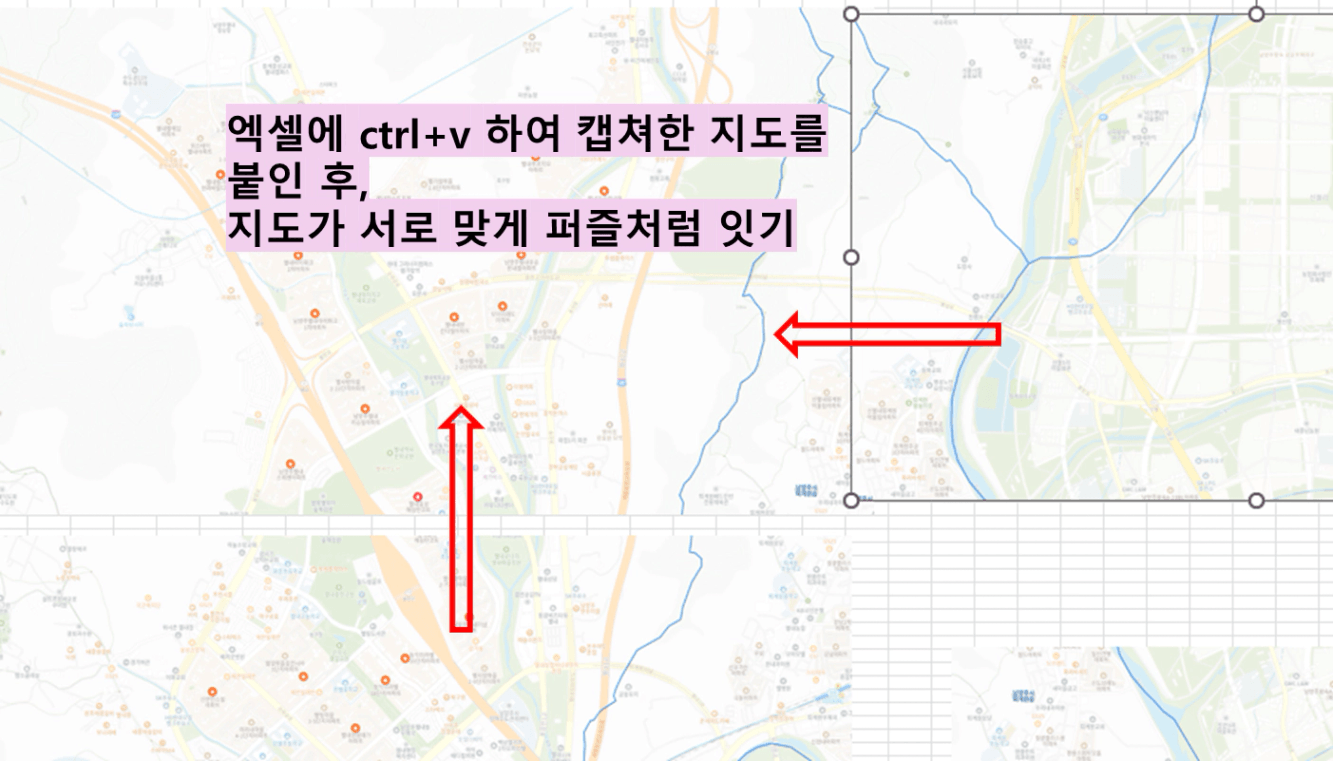 -엑셀에 [ctrl+v] 하여 캡쳐한 지도 붙이기