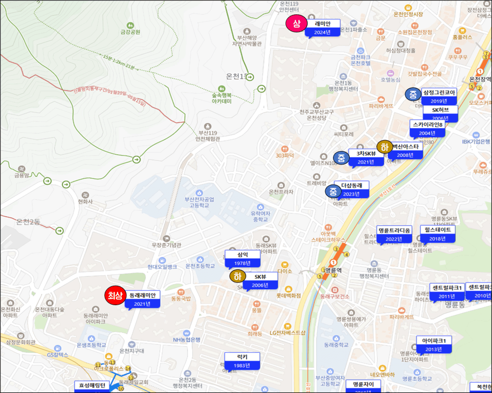 다른 예시로는 비슷한 연식의 단지이더라도
