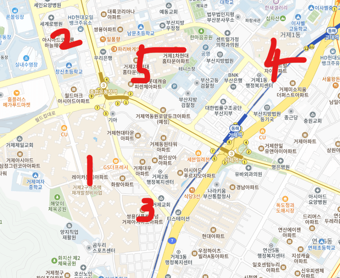 지도상으로는 아파트가 밀집해있으니