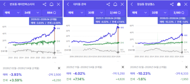 강남, 서초, 송파 같은 최상급지들은 수익실현을 한 다주택자들의 매물들로 최근 하락 거래가 좀 되었는데요
