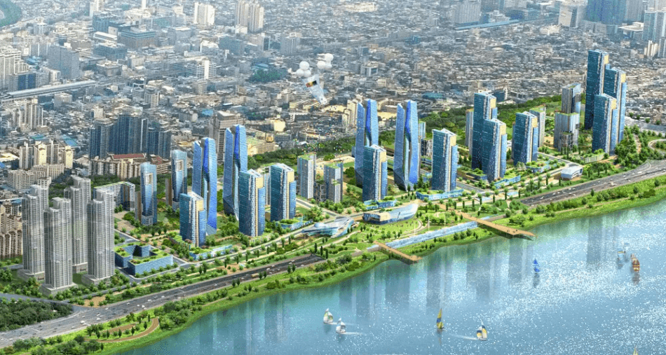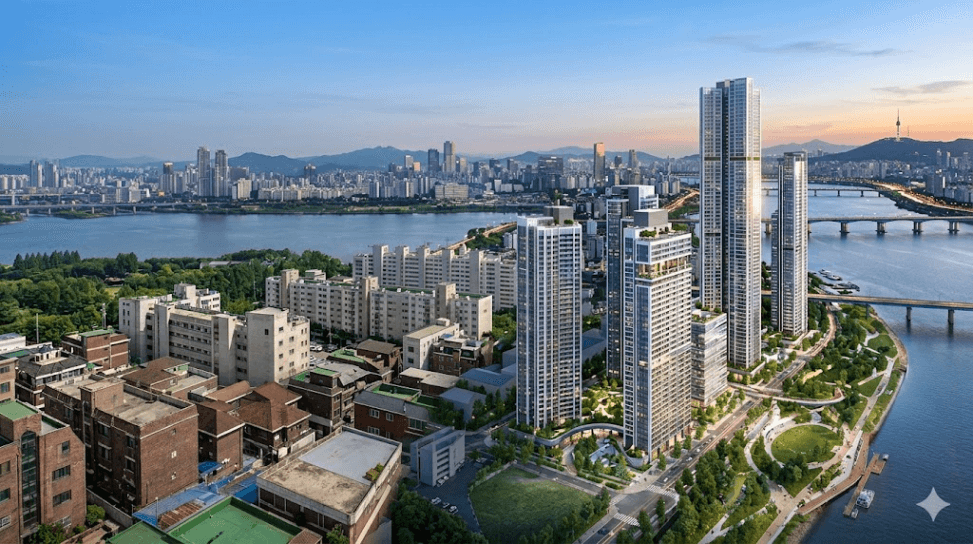 4지구 | 약 1,590세대 | 가장 빠른 속도로 진행중이며, 2026년 2월 통합심의를 통과했으며, 최고 70층 높이로 하이엔드 브랜드들이 수주전을 앞두고 경쟁하고 있습니다 |