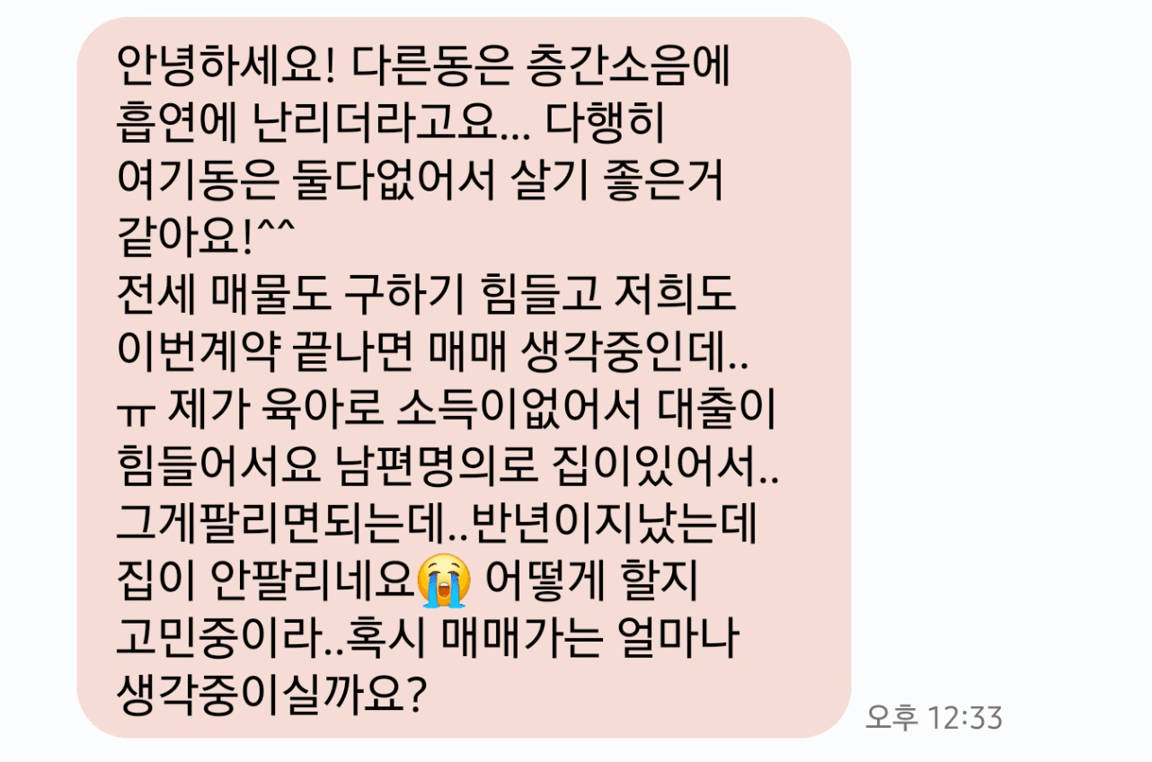 1호기 매도에 대해 세입자 분께 조심스레 의견을 여쭈었으며