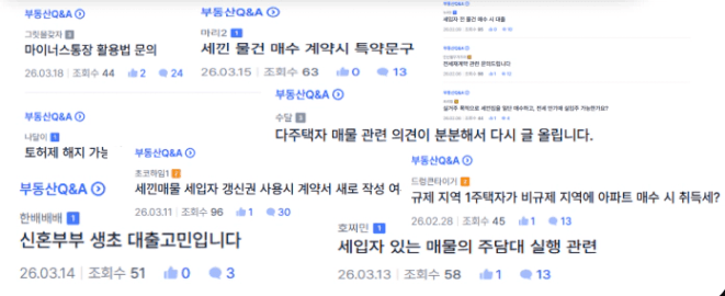그러다보니 “다주택자 물건”, “토허제 지역매수”, “주택담보대출”, “세낀물건 매수”에 대한