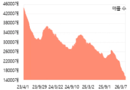 서울 전세 물량 : 23년 4월 43,349개 → 26년 4월 14,779개