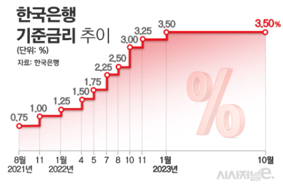 기준금리는 23년 1월부터 3.5%로 계속해서 동결인 상황이다.