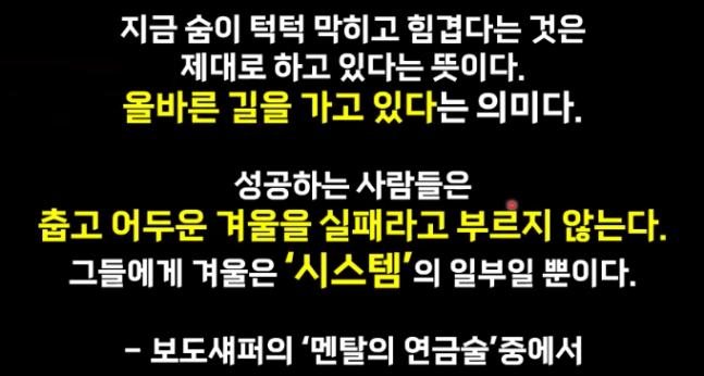 지금 힘겹다면 제대로 하고 있고 올바른 길을 가고 있다는 의미라고 해요!