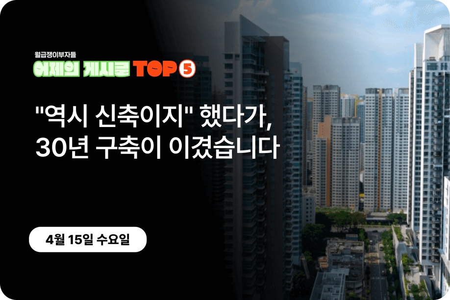 가장 반응이 좋았던 인기글만 담아 ‘어제의 게시글’ TOP5를 소개합니다.