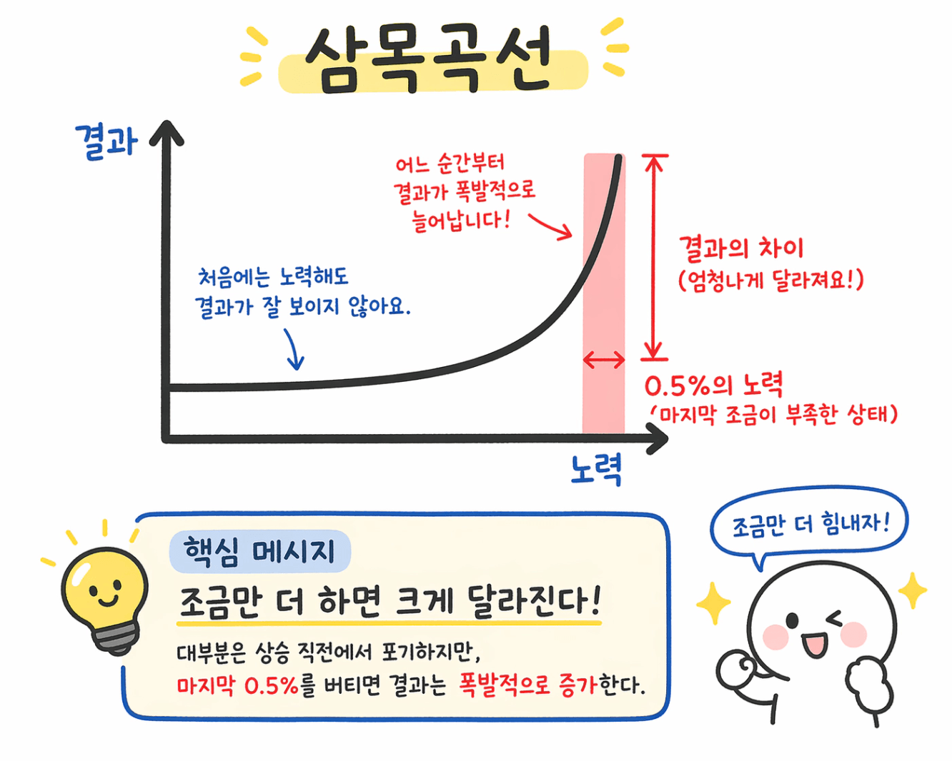 즉, 처음에는 노력해도 결과가 잘 보이지 않다가