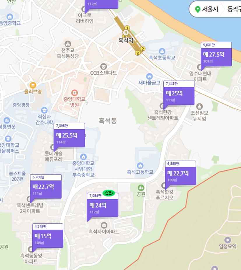 현재 흑석동의 국민평형 시세는 약 22~25억정도 수준을 형성하고 있습니다.