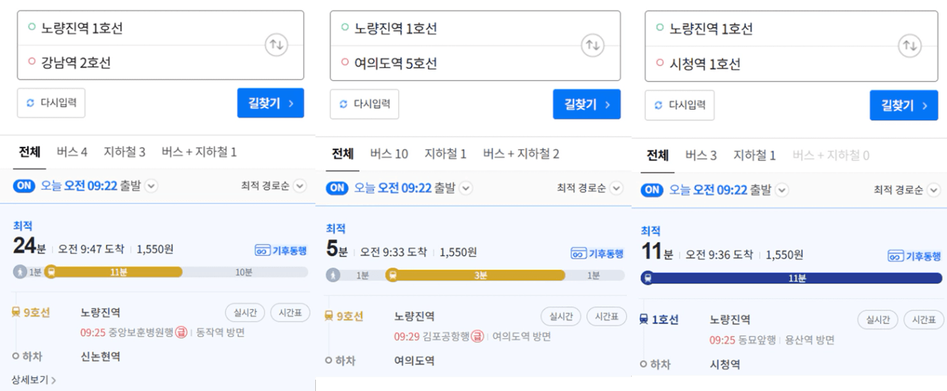 위로는 도심과 여의도, 강남을 모두 갈 수 있는 1호선, 9호선 노량진역
