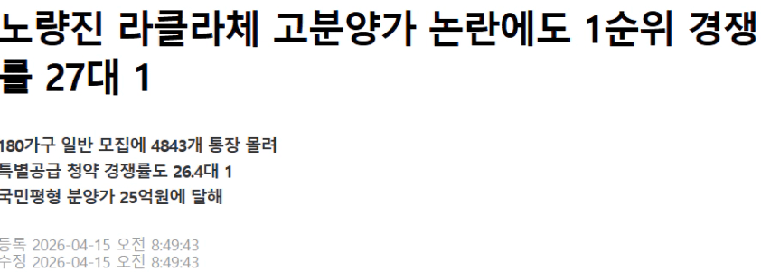 국민평형 분양가 25억원이었음에도 경쟁률이 상당했죠.