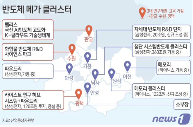 플랫폼시티 개발과 함께 경기 남부 일대에 반도체 메가 클러스터를 구축하여 반도체의 중심 축을 만들려는 구상이 진행되고 있습니다.