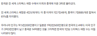 (인구수 대비 스버벅스 매장수로 했을 때 세계1등 수준입니다.)