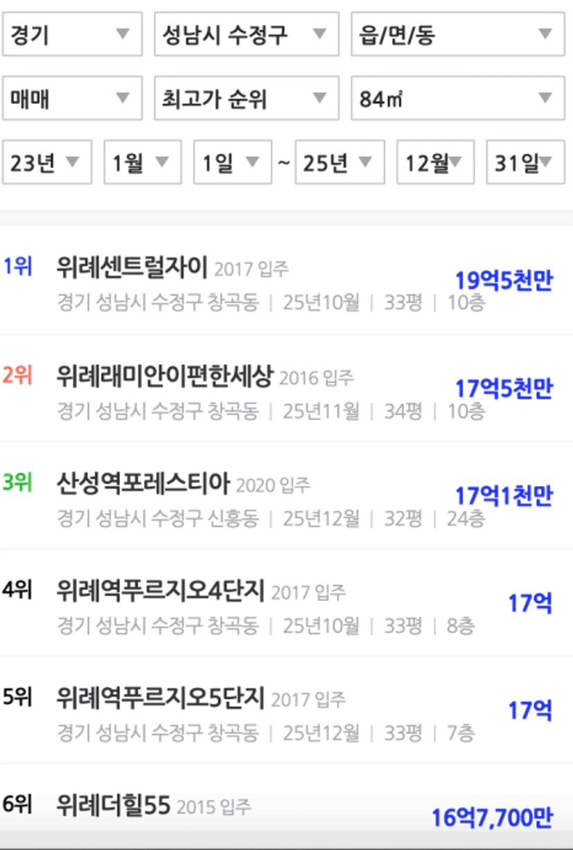 일단 성남시 수정구가 있다. 수정구는 크게 위례와 산성지구가 있다. 위례가 급지적으로는 더 상급지다. 하지만 기축화가 진행되고 있다. 반면 산성지구는 위례보다 급지가 낮지만 역접근성이 높은 두단지(포레스티아, 헤리스톤)는 신축이기 때문에 위례의 중하위 단지를 역전할 수 있을 것이다. 하지만 위례는 정말 위례신사선이 모든 것을 결정할 것이다.